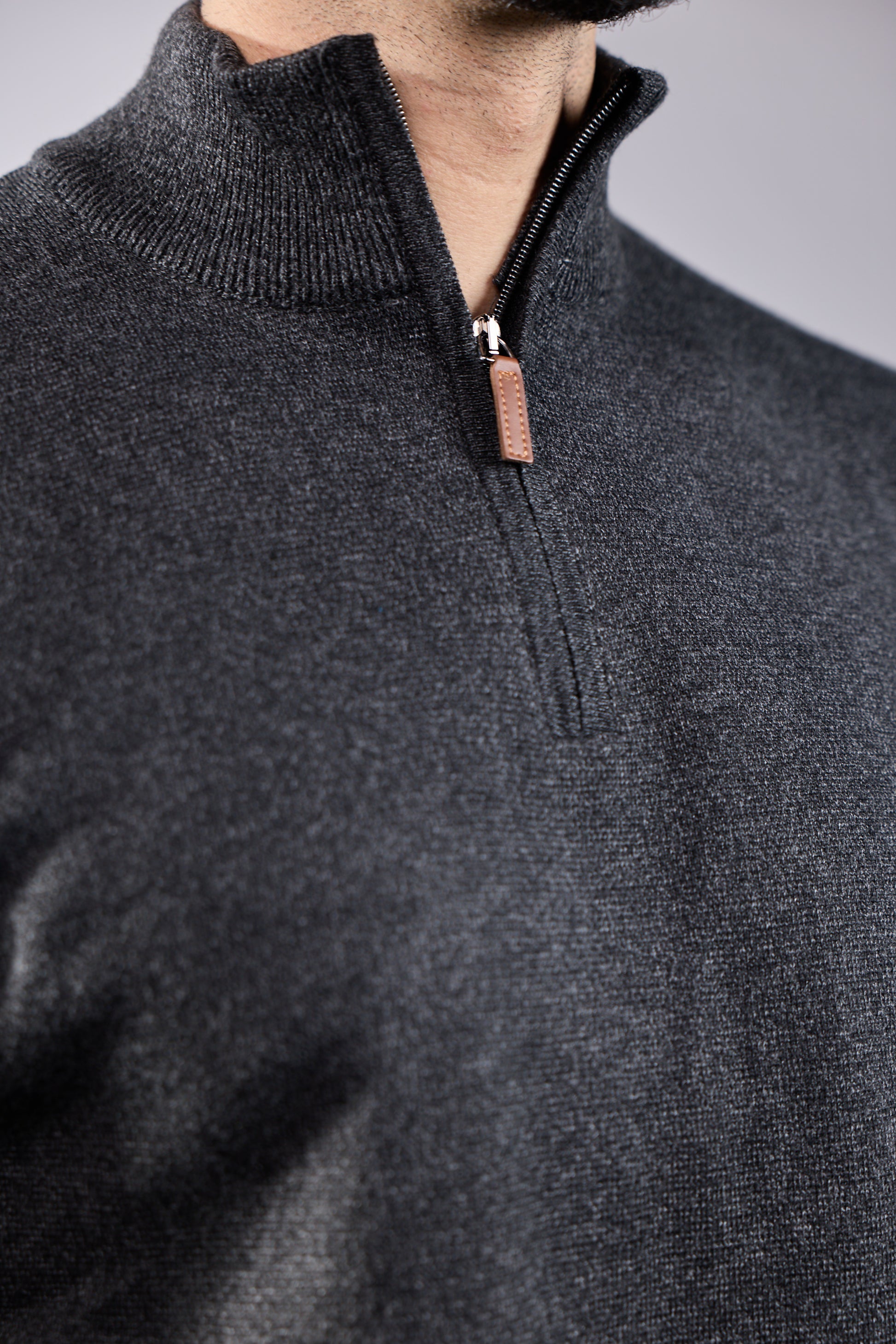 The Men's Fine-Knit Quarter-Zip Sweater offers lightweight warmth and modern sophistication. Crafted from a soft, fine-gauge knit, it features a ribbed stand-up collar and a sleek quarter-zip closure. This refined layer is perfect for business-casual settings and weekend outings.