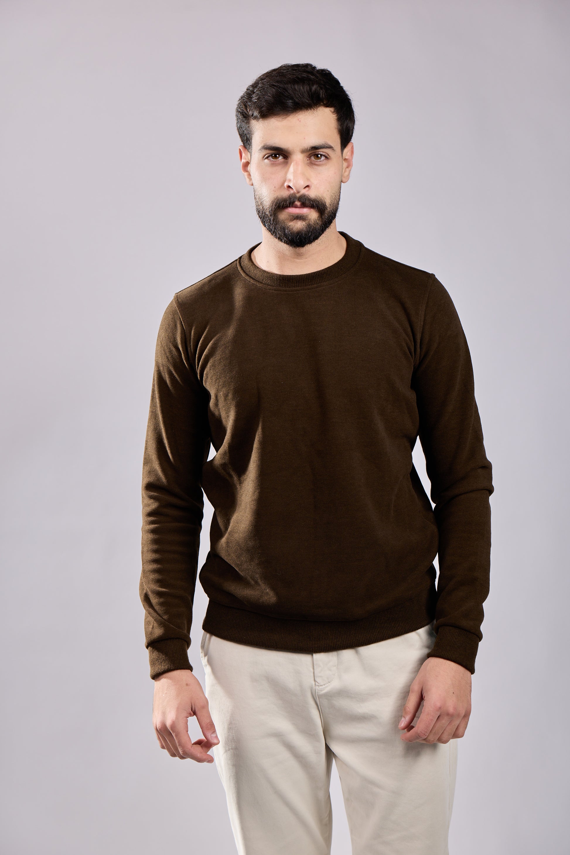 Elevate your wardrobe with this essential Men's Crewneck Long-Sleeve Sweater. Crafted from a soft, quality material, it features a timeless crewneck design and ribbed cuffs for a comfortable, structured fit. Available in a wide variety of colors to match any style.